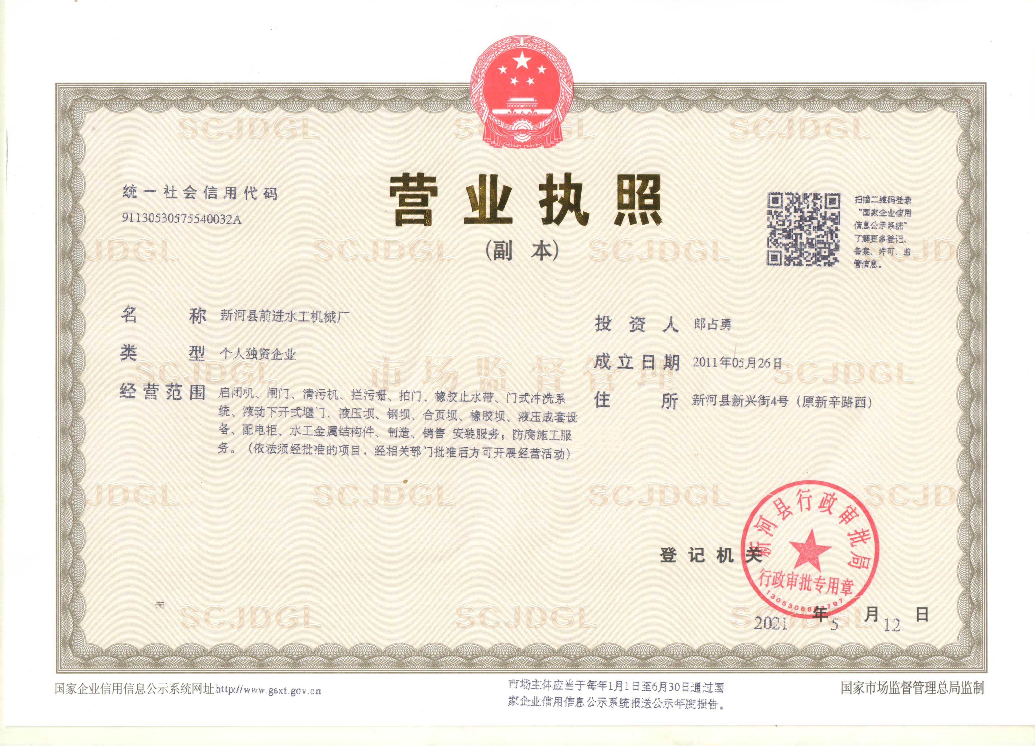 新河縣前進水工機械廠是一家專門從事水利工程設備研發生產的廠家,現有員工228人,各類高、中級專業工程技術人員近30人,技術生產工人180多人。公司占地面積14674平方米。公司擁有車、鉗、刨、銑、冷作、鈑金、鑄造等,工種齊全,加工能力和技術力量雄厚,并具備理化測試手段與儀器設備。前進水工專注景觀閘門,鋼壩,合頁壩,液壓升降壩,液壓閘門,臥倒門,一字門,人字門,液壓啟閉機,卷揚啟閉機,螺桿啟閉機,清污機,除污機,閘門,拍門等設備的研發與生產,是新河水利工程產品行業的領跑者,不僅在同行業群中揭起了一次又一次的技術革新,更為水利工程企業提供了更高更大的選擇平臺。
